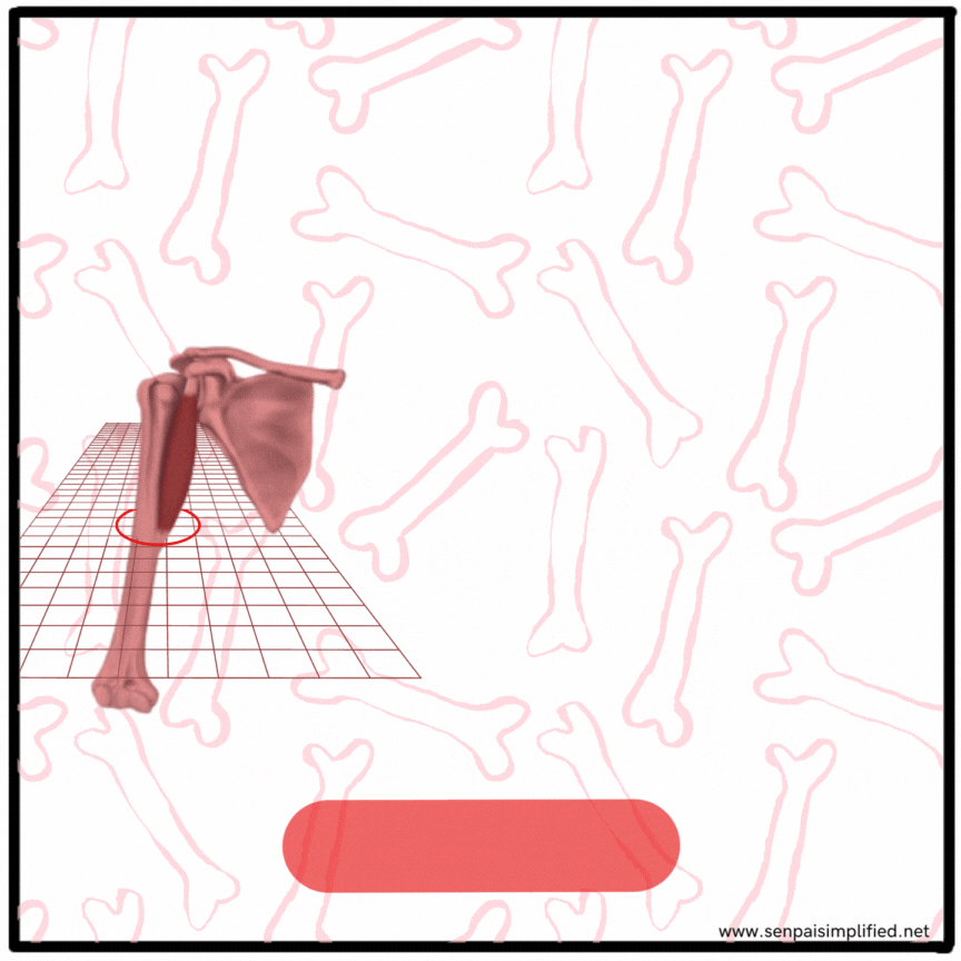 - The humerus is circular in cross-section if cut above this level, and it is triangular in cross-section below this level. The transition from circular to triangular happens at this level